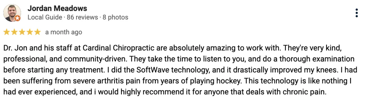 As part of this SoftWave™ Therapy special, you will receive the following at your appointment at Cardinal Chiropractic: